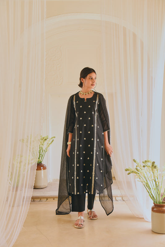BLACK EMBROIDERED KURTA SET