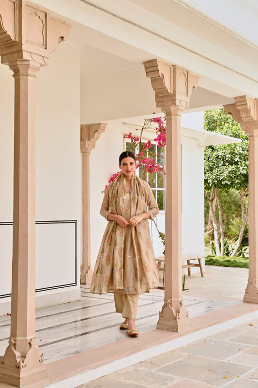 BEIGE CHANDERI GOTA PATTI KURTA SET