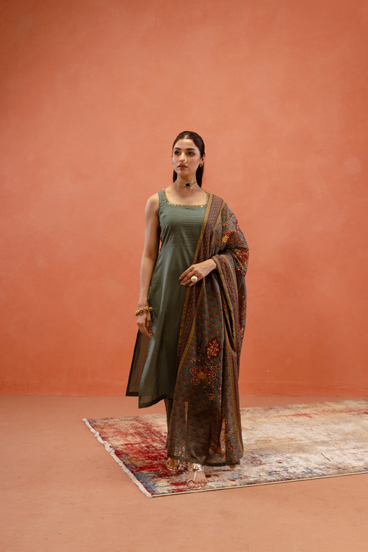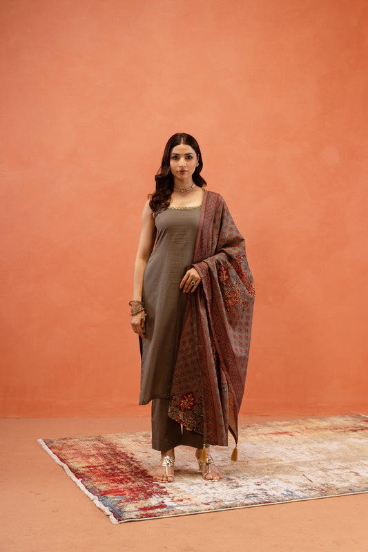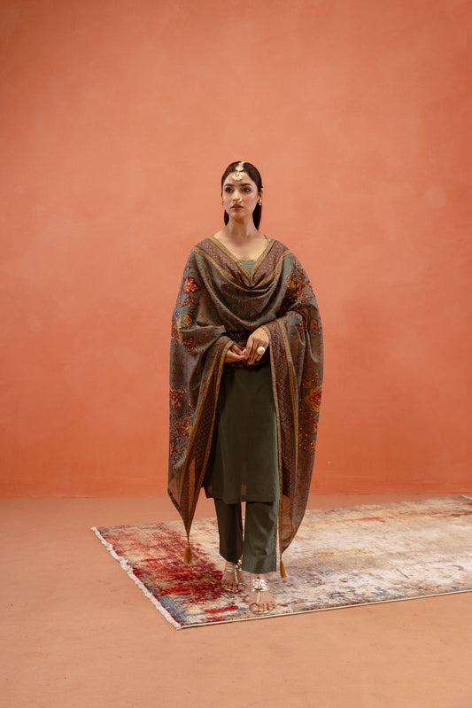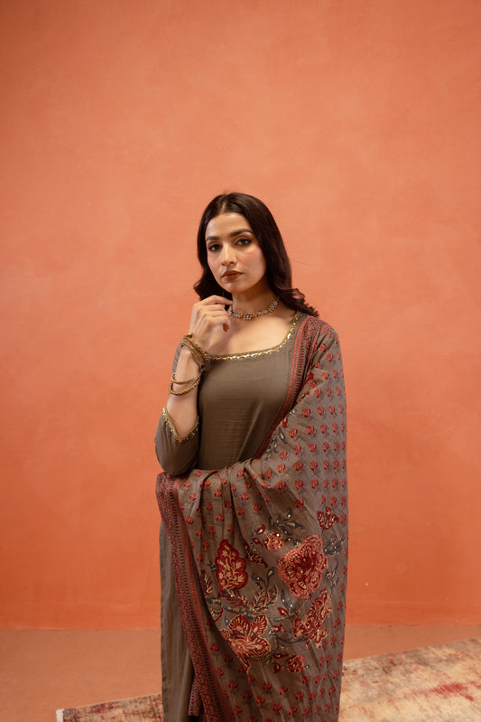 The collection offers three versatile styles: a flowing Anarkali, a contemporary Sharara set with shawl carrying the same embroidered motifs as the printed Anarkali, and a refined straight-cut suit elevated with intricate handwork. With sleeved and sleeveless options available, Autumn Veil is designed to embrace every mood of the season — from understated elegance to radiant celebration.