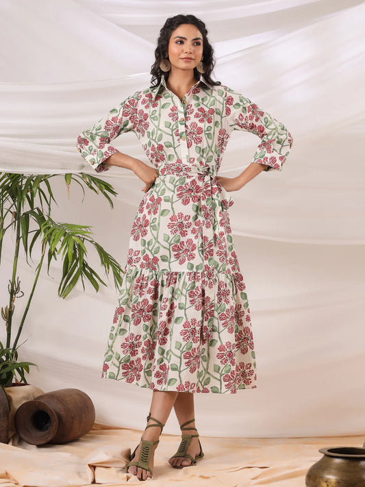 Off White Printed Cotton Dress