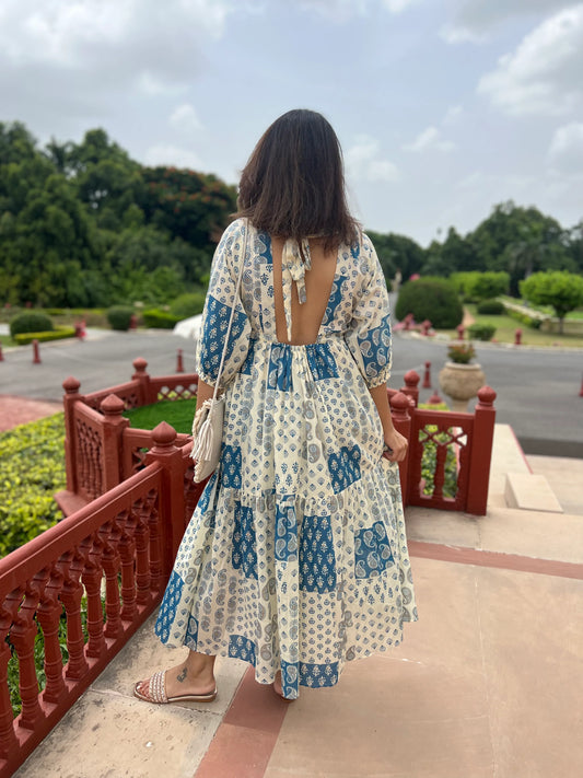 Blue Booti Handblock Printed Sleeveless Midi Dress
