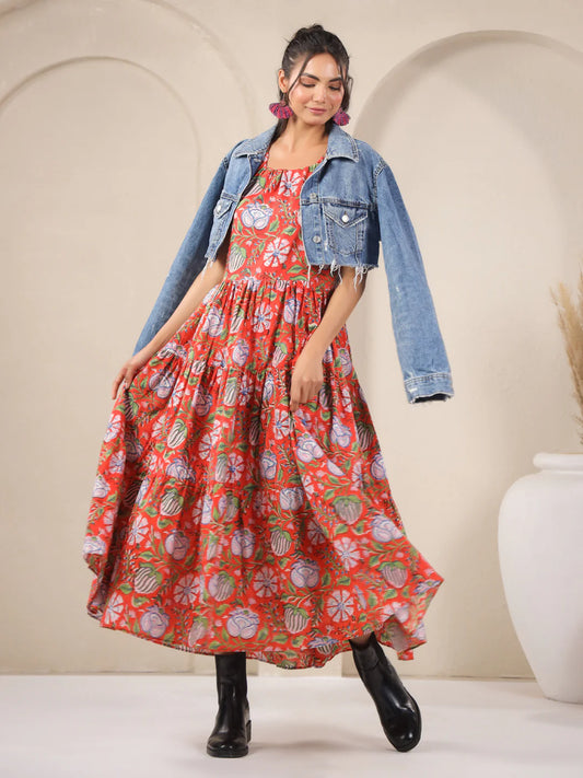 Free Size Cotton Dress with Adjustable Drawstring Waist & Lining