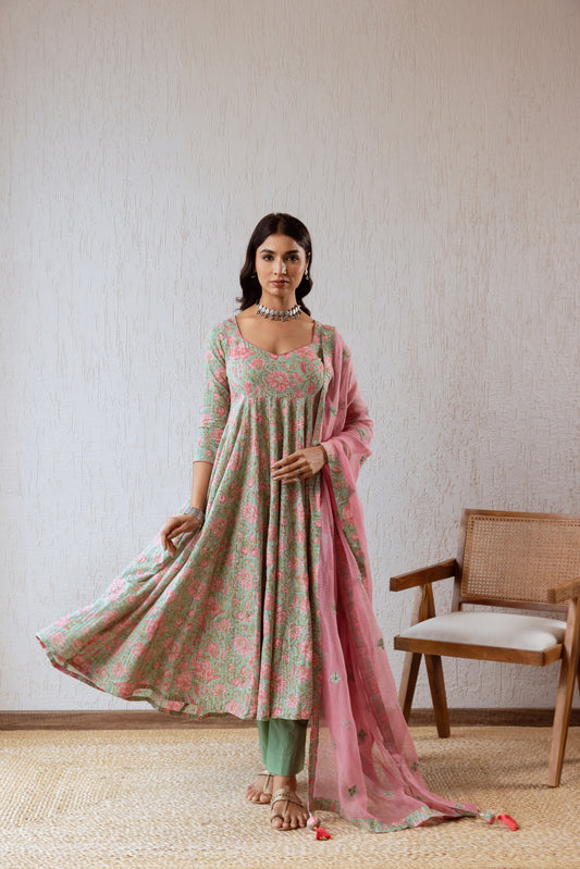 Celebrate the spirit of Deepavali with "Echoes of Block Print," our enchanting festive edit for 2024. This collection showcases exquisite Indian ethnic suits, each beautifully crafted with vibrant hand-block prints and intricate embroidery. Designed to embody the joy and brightness of the festival, these pieces are perfect for festive gatherings, family celebrations, and dazzling nights. Embrace the rich heritage and artistry of Indian textiles while shining with elegance and grace this Deepavali. Let the "Echoes of Block Print" illuminate your festive wardrobe!