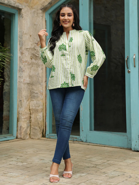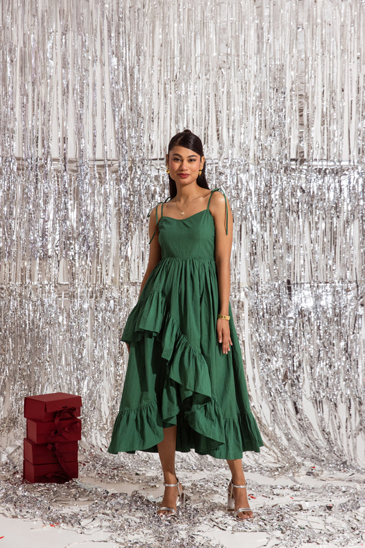 White & Green Sleeveless Maxi Dress with Belt and Pockets