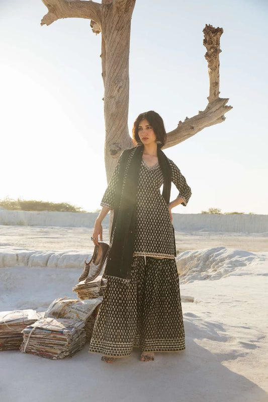 Sold outINDIGO BLUE BLOCK PRINT SHARARA SET