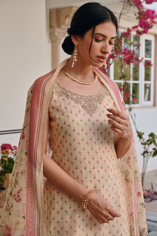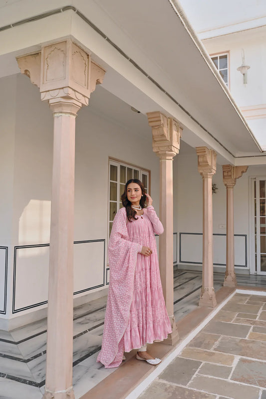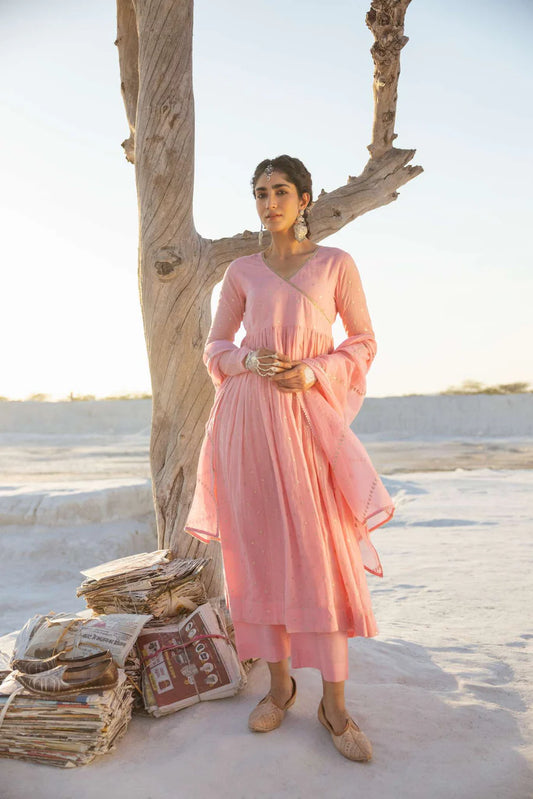 PINK EMBROIDERED ROUND NECKLINE KURTA SET