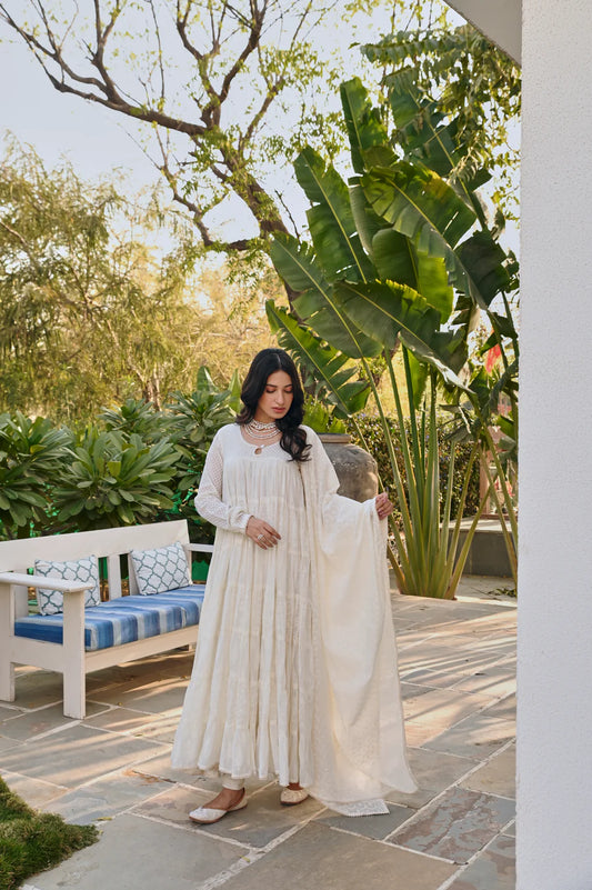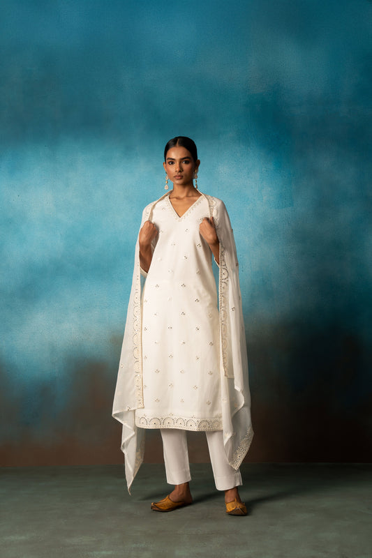 CHIKANKARI WHITE STRAIGHT KURTA SET