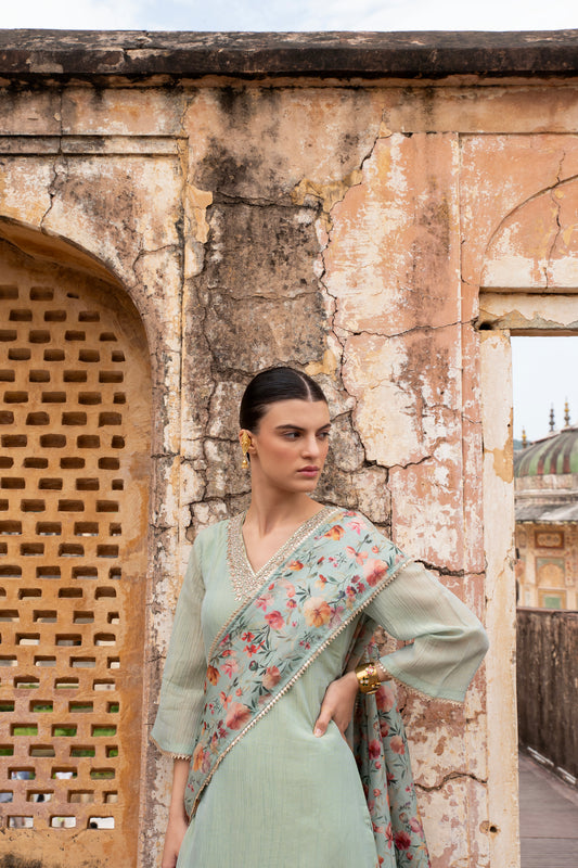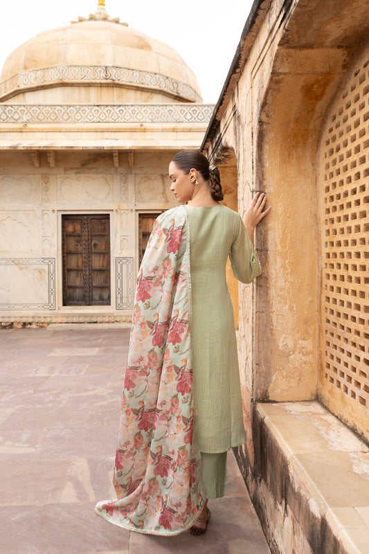 PASTEL GREEN EMBBROIDERED ROUND NECKLINE KURTA SET