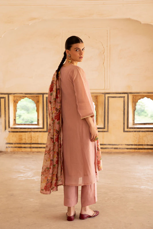 V-NECK EMBROIDERED CRUSHED TISSUE KURTA SET