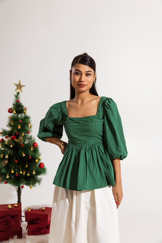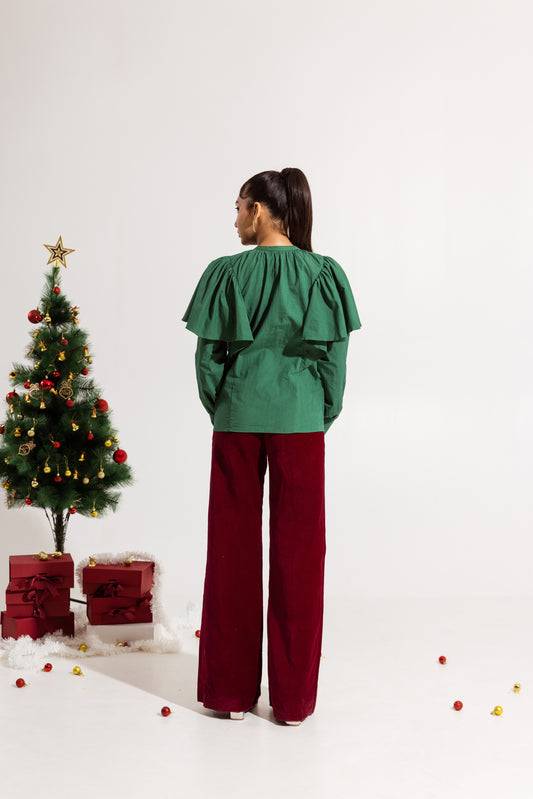 Green Ruffled Sleeved Top