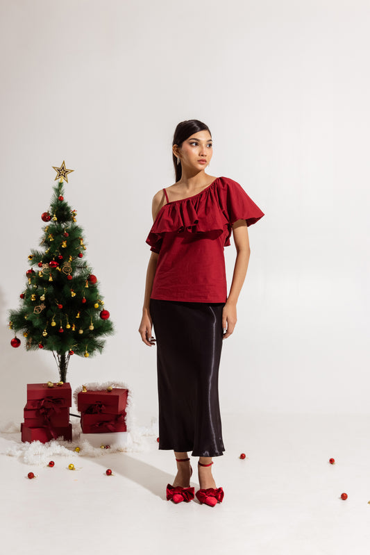SaleRed Ruffled Toga Top