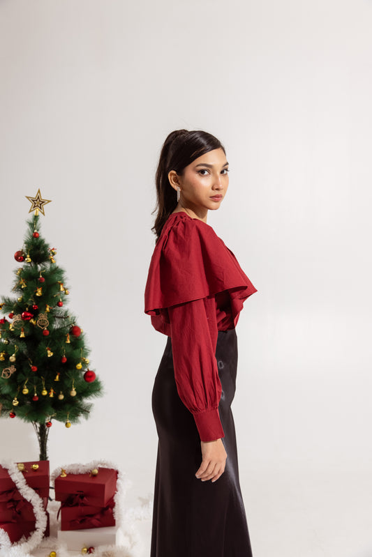 Red Ruffled Sleeved Top