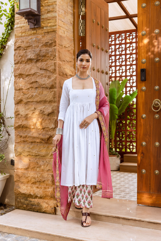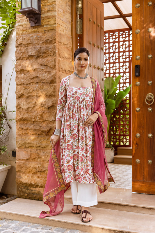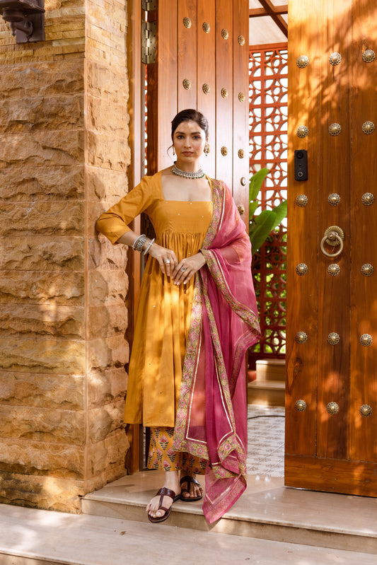 Nyra Tales is a celebration of harmony in motion — where the timeless elegance of the Nyra cut meets a vibrant symphony of colors, florals, and contrasting shawls. Each piece is thoughtfully designed to balance tradition with contemporary flair, featuring blooming prints, striking solids, and shawls that add the perfect finishing touch. Effortless yet festive, this collection brings rhythm and grace to every occasion, making each ensemble a melody of style and sophistication.