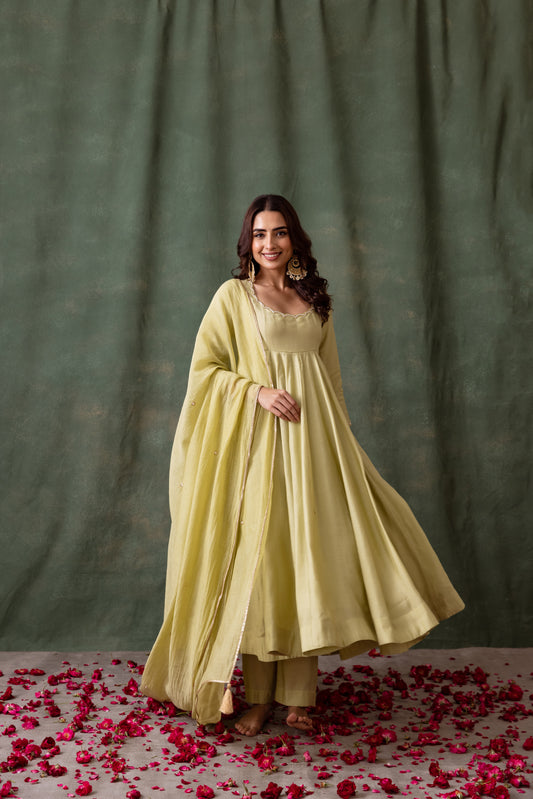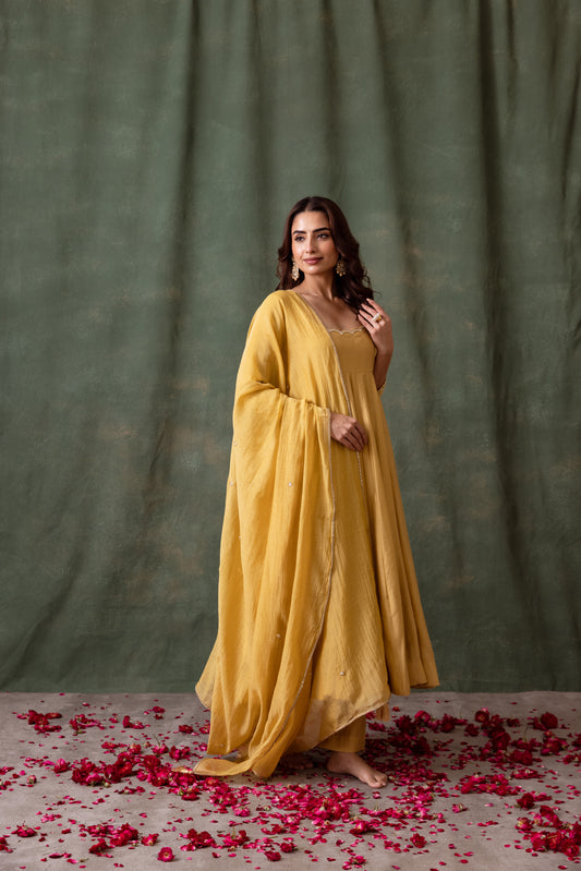 Our signature mul Chanderi shawls, adorned with delicate handwork, complete this opulent collection. Perfect for special occasions, Regal Reverie invites you to embrace your inner royalty, exuding confidence and sophistication with every drape. Experience the artistry and timeless beauty that makes each outfit a true masterpiece.