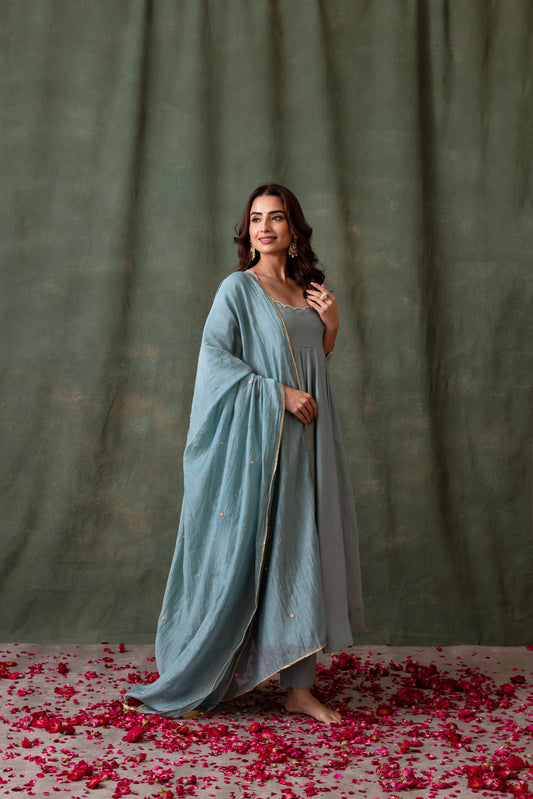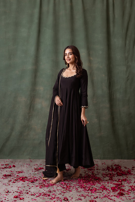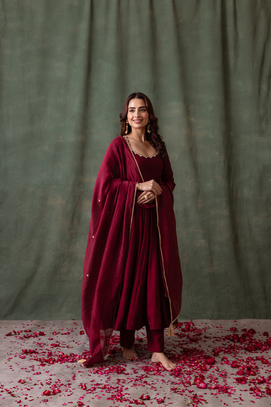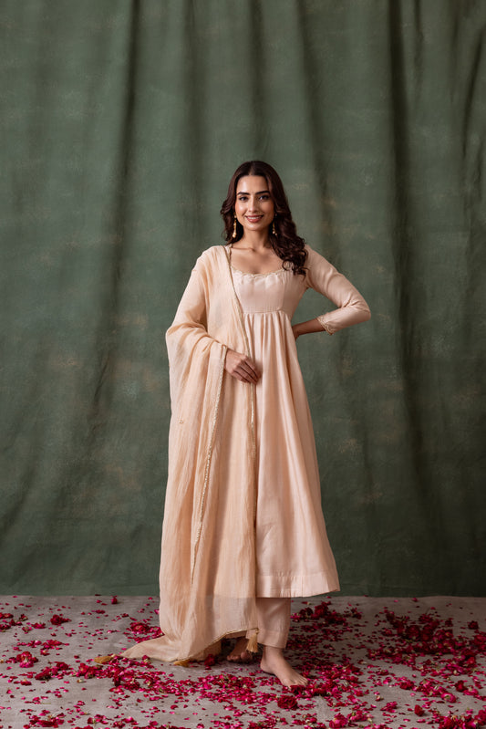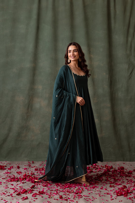 Discover Regal Reverie, a high-end Indian ethnic wear collection designed by our founder, where every detail is meticulously crafted. Made from luxurious modal silk, each piece features handpicked colors and exquisite hand-beaded scalloped necklines, creating stunning focal points of elegance.