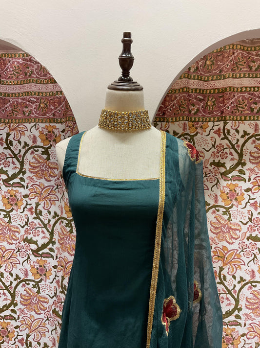Teal Sharara Sleeved Set