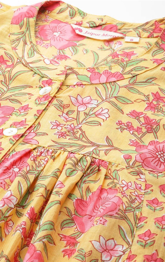 Yellow Printed Sequinned Pure Cotton Kurti