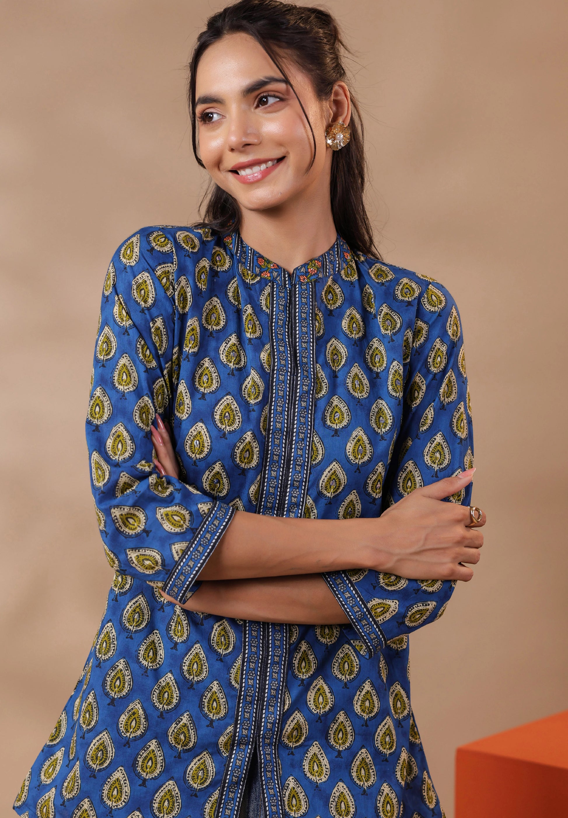Blue Printed Cotton Top