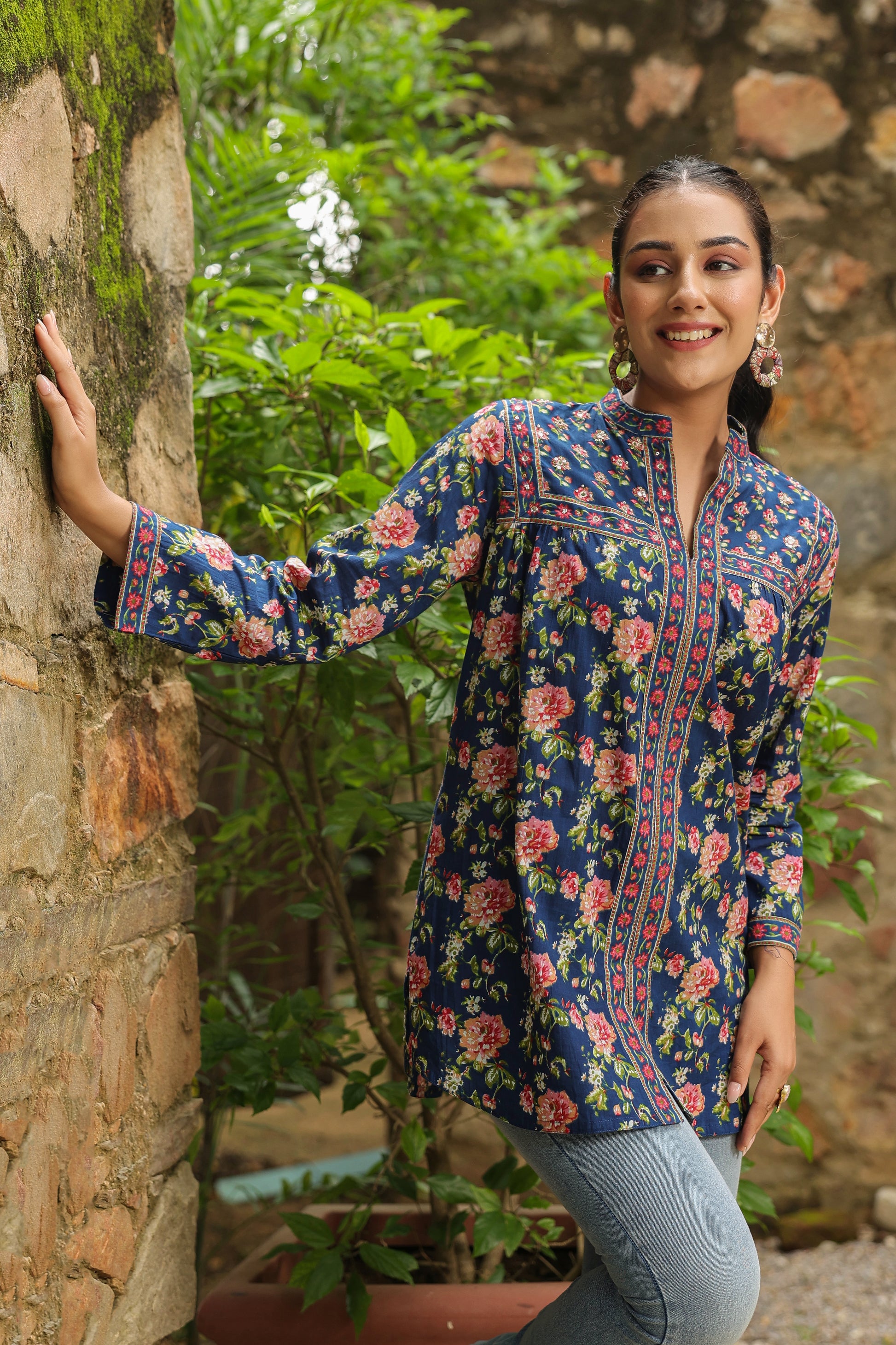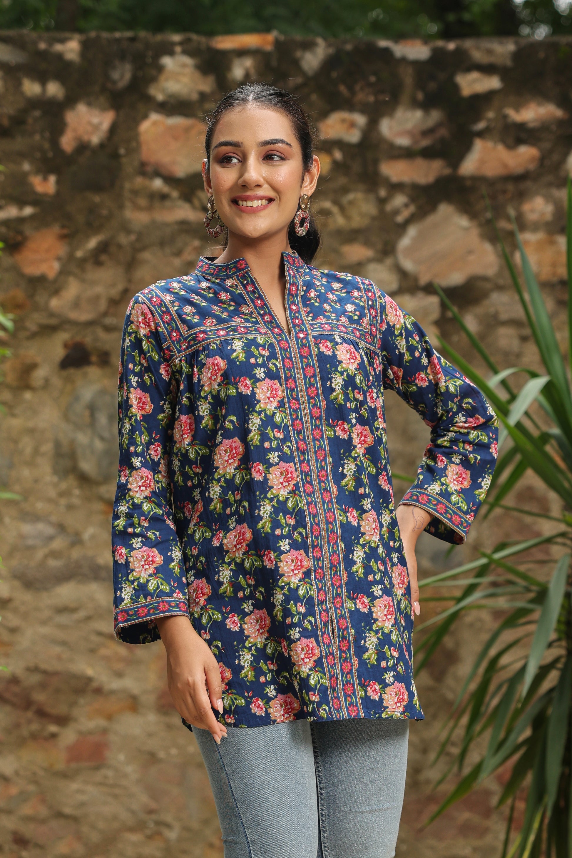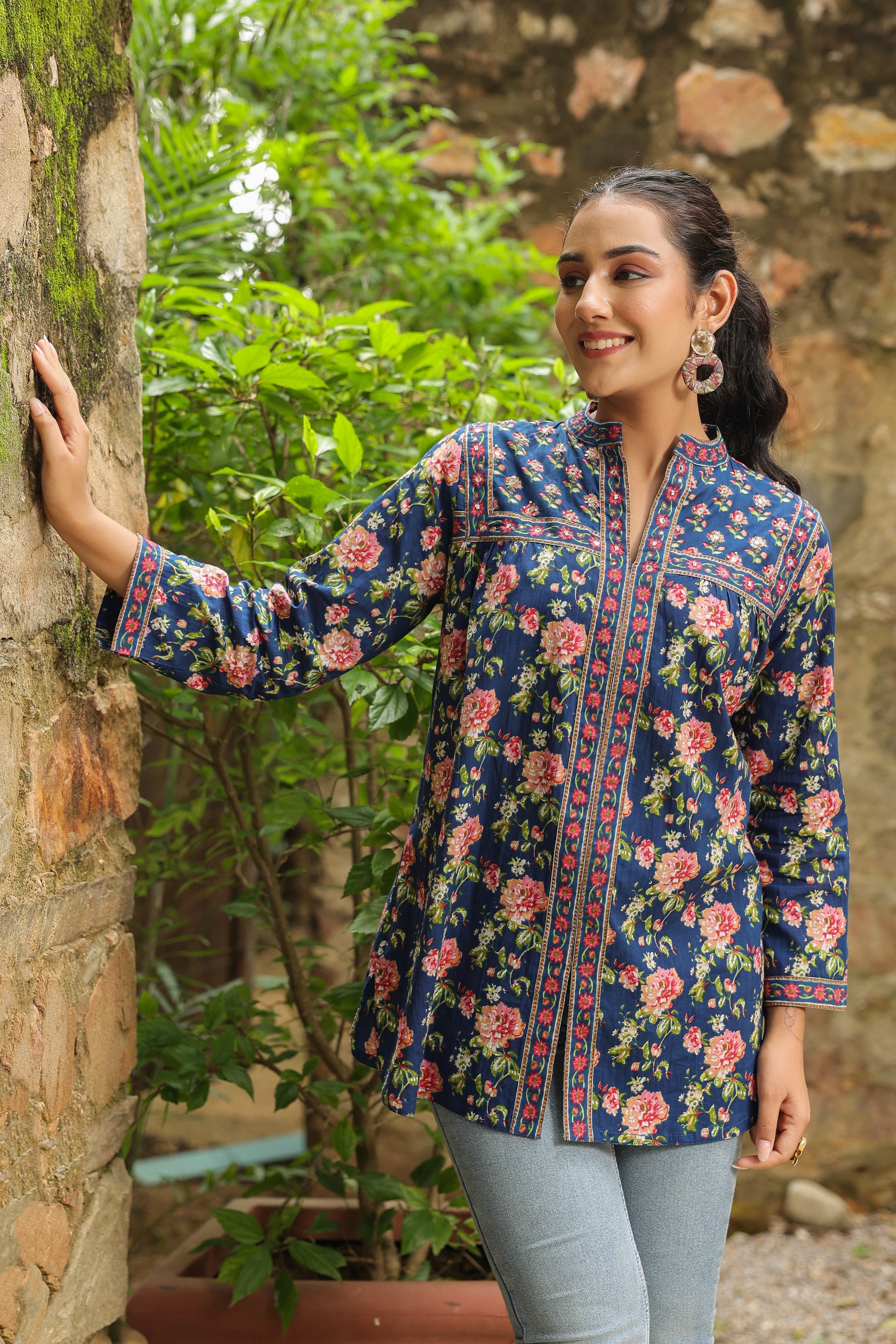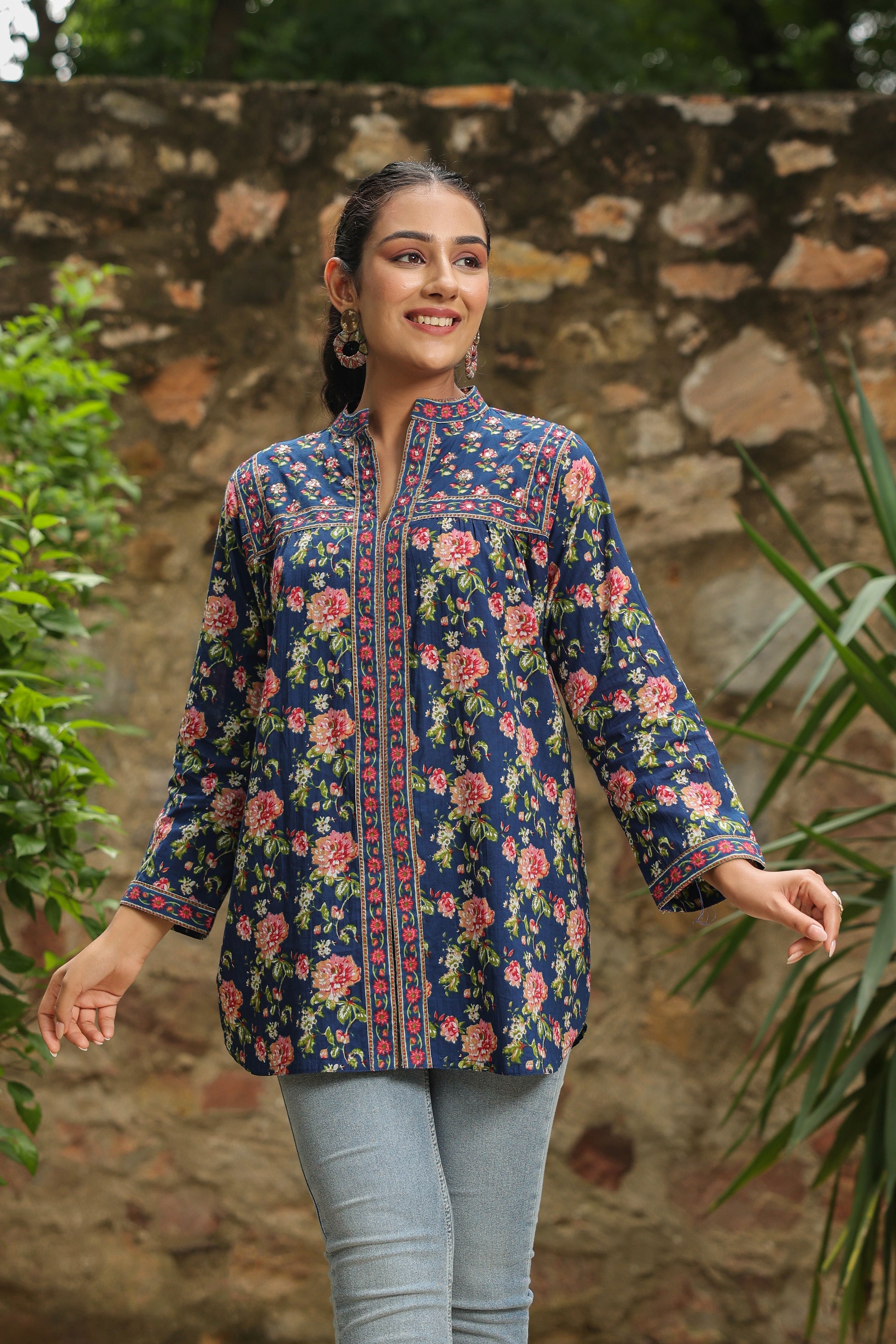 Blue Printed Longline A-Line Top
