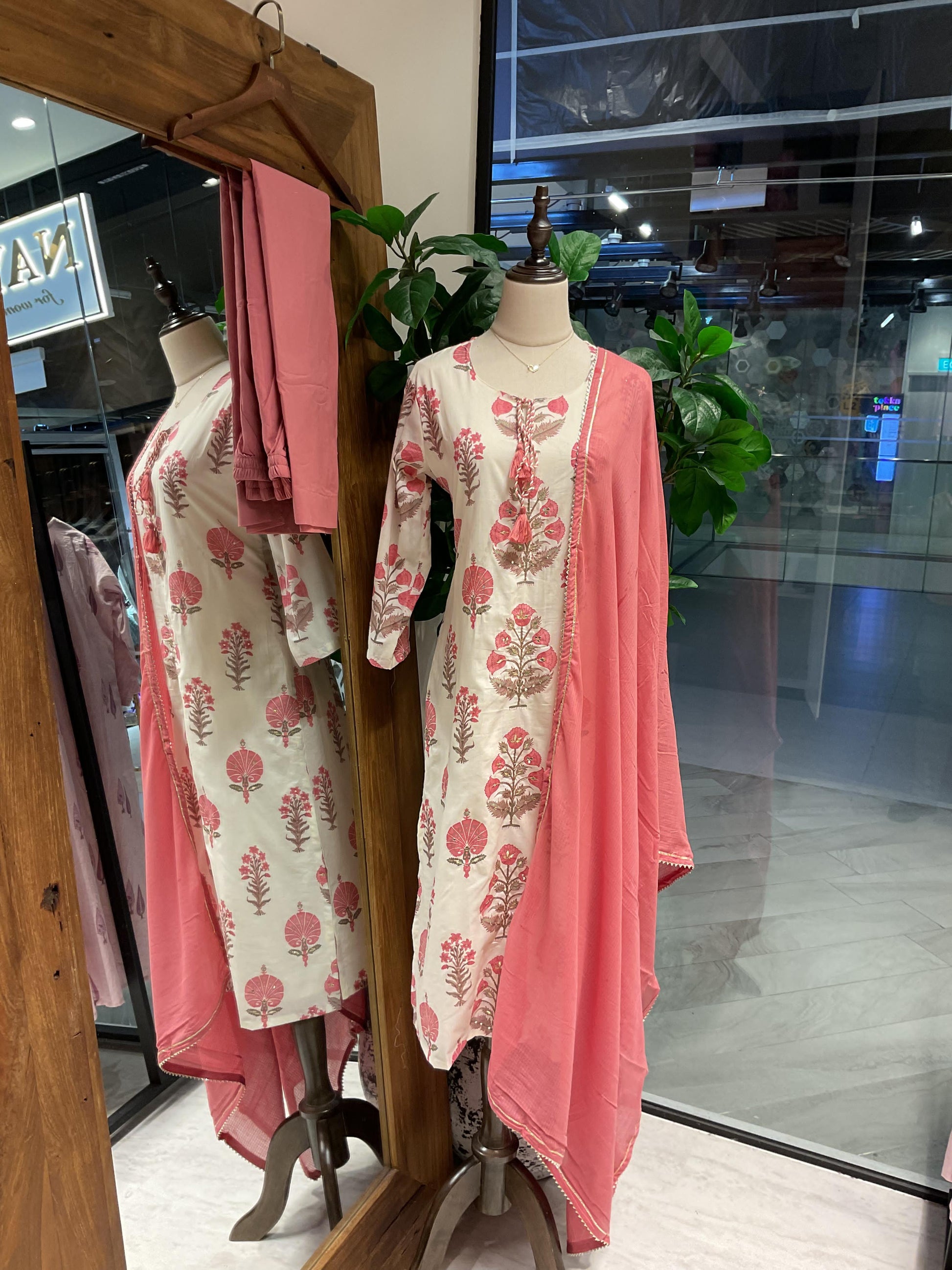 A timeless classic, this 3-piece traditional suit set is crafted from soft, breathable cotton for all-day comfort. Designed for simplicity and ease, it includes a kurta, straight-cut pants, and a matching dupatta—ideal for daily wear to work or visits to the temple. The minimalist design and lightweight fabric make it a versatile wardrobe essential, combining tradition with effortless style.