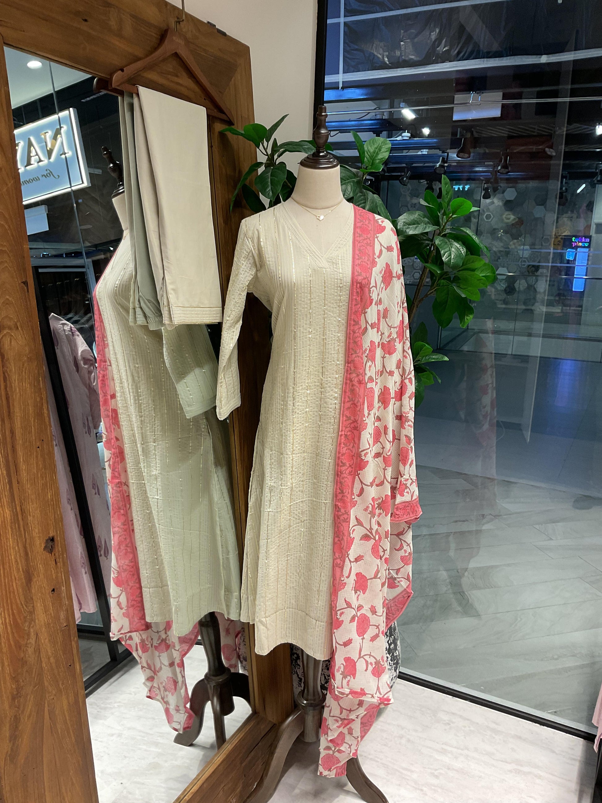 A timeless classic, this 3-piece traditional suit set is crafted from soft, breathable cotton for all-day comfort. Designed for simplicity and ease, it includes a kurta, straight-cut pants, and a matching dupatta—ideal for daily wear to work or visits to the temple. The minimalist design and lightweight fabric make it a versatile wardrobe essential, combining tradition with effortless style.