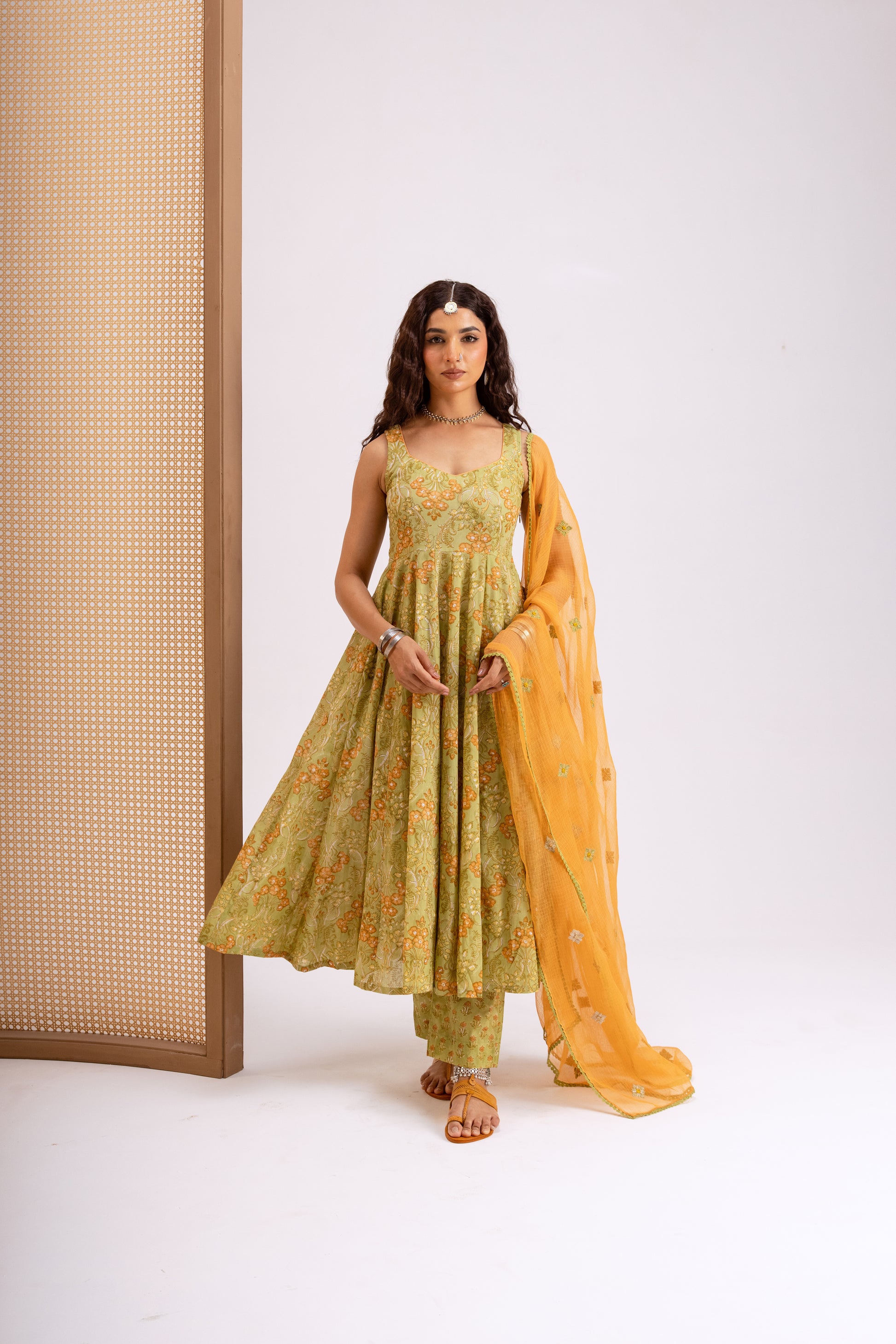 Apple Green X Orange Jaal - Sleeveless