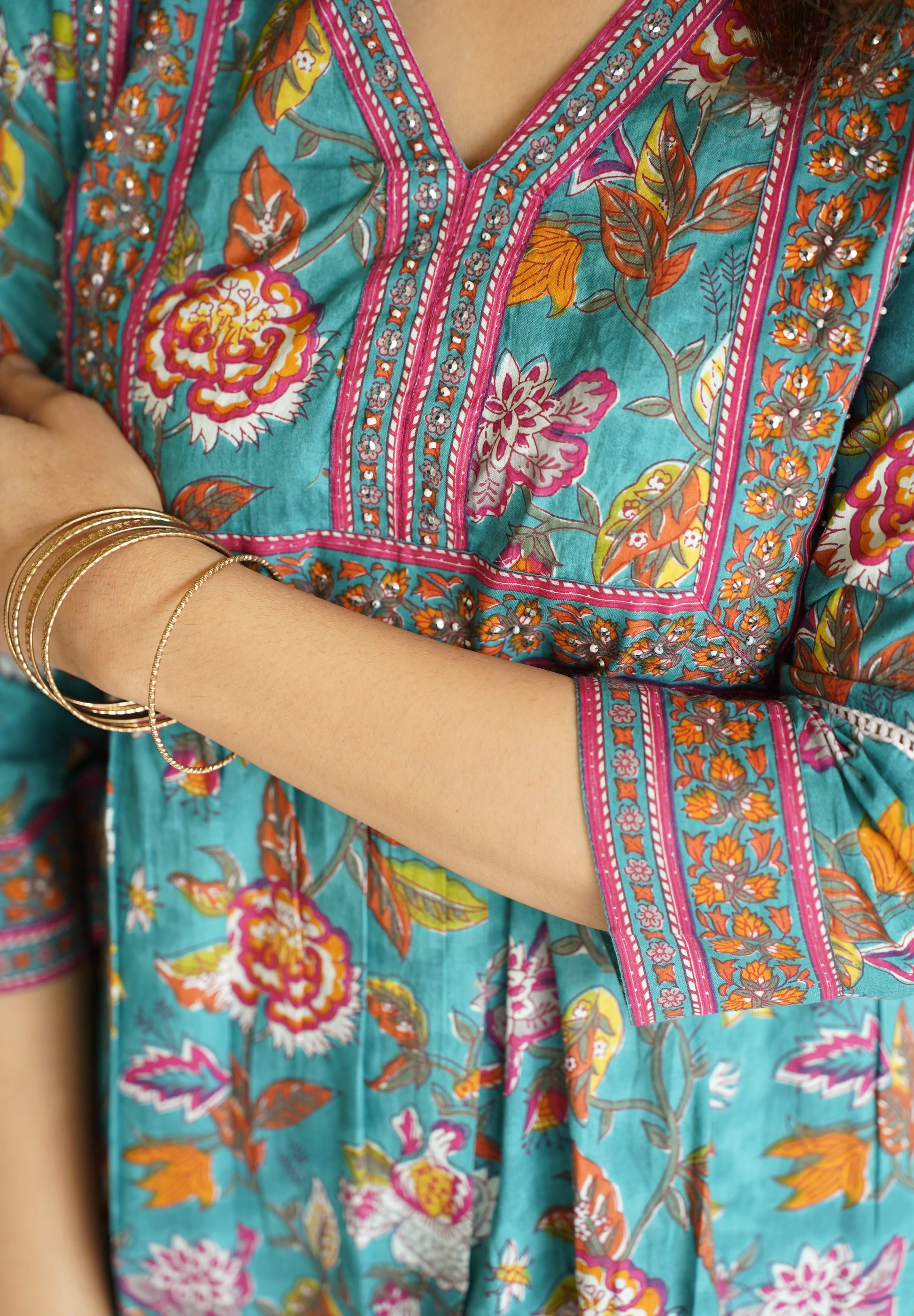 Sea Green Floral Print Cotton Top
