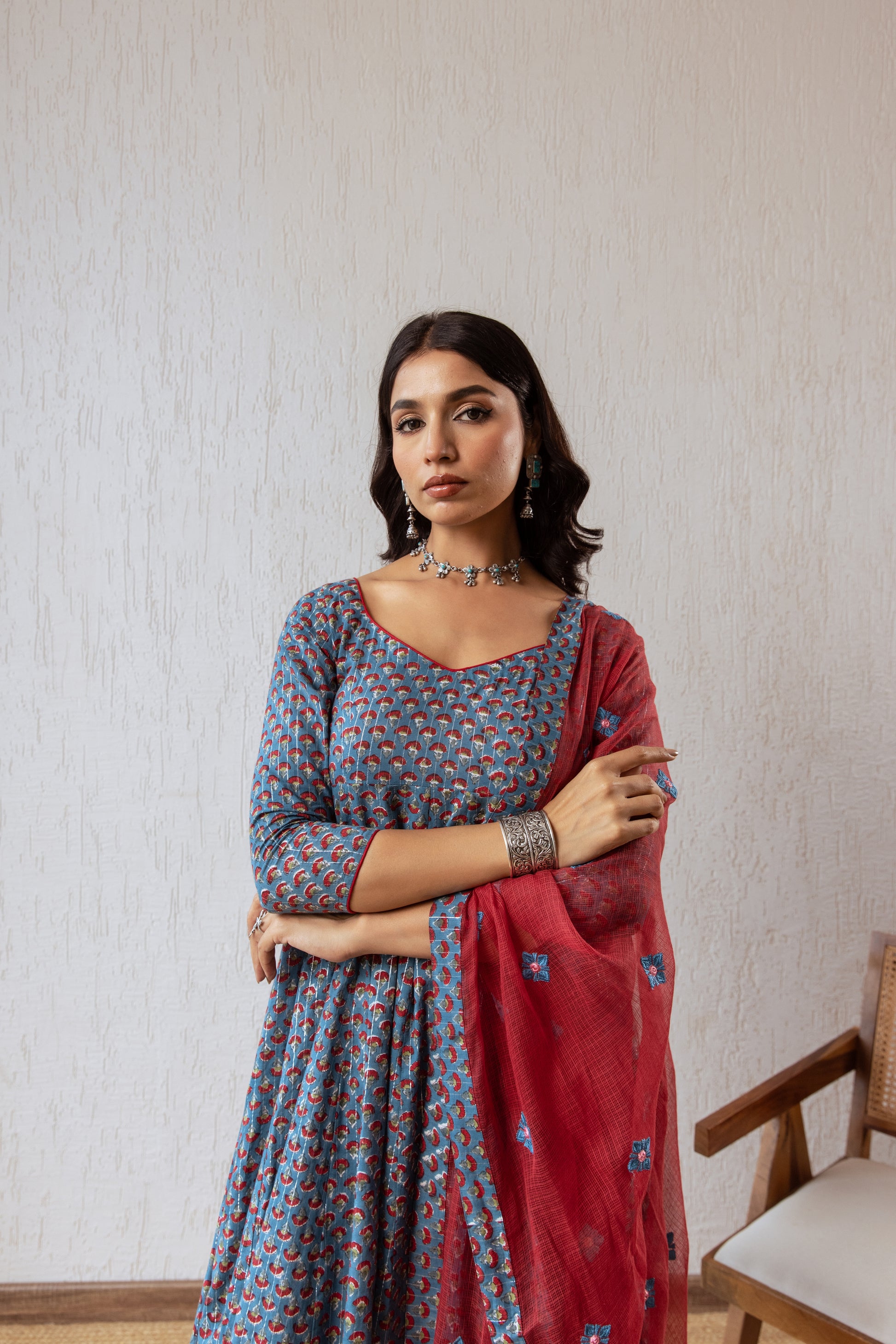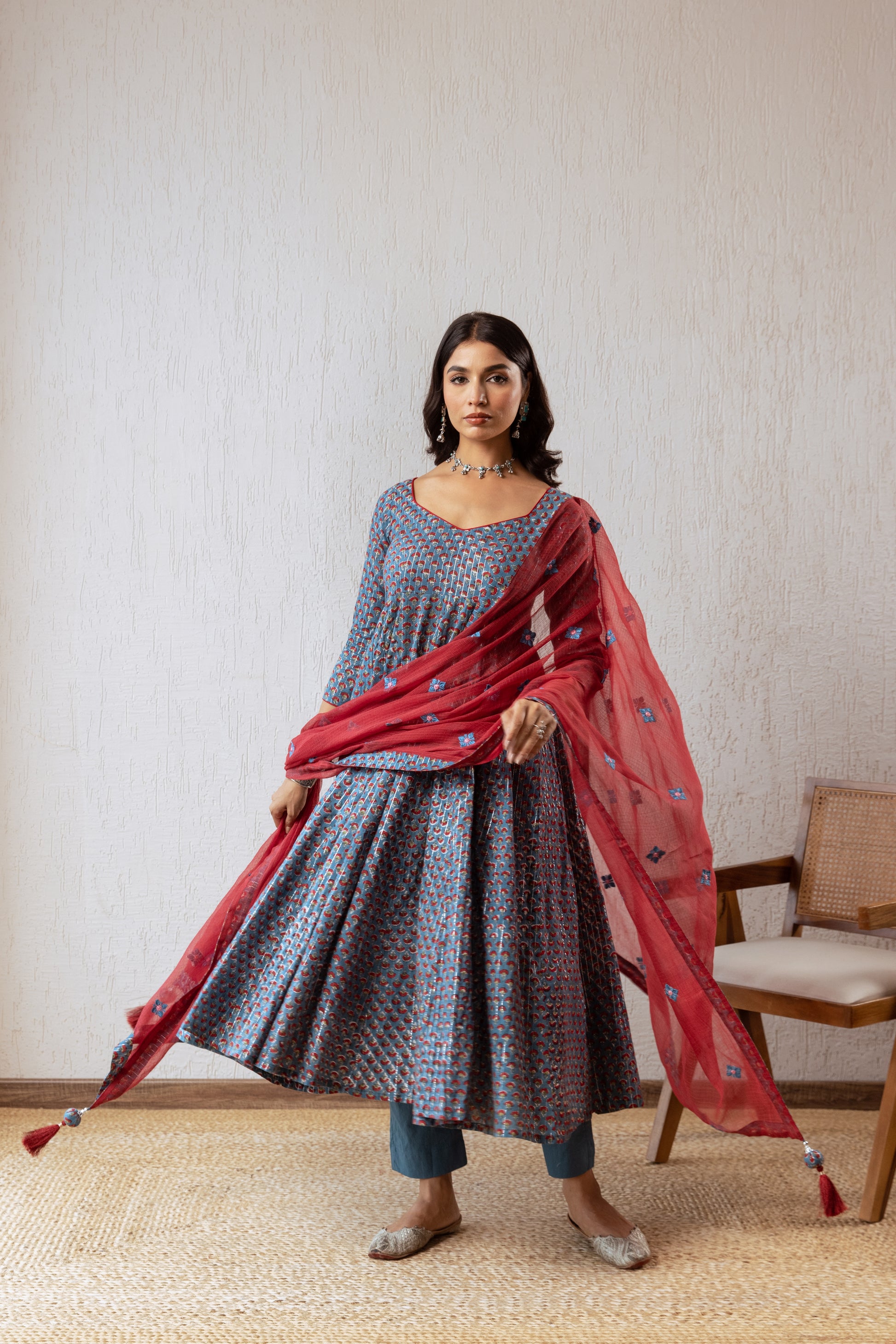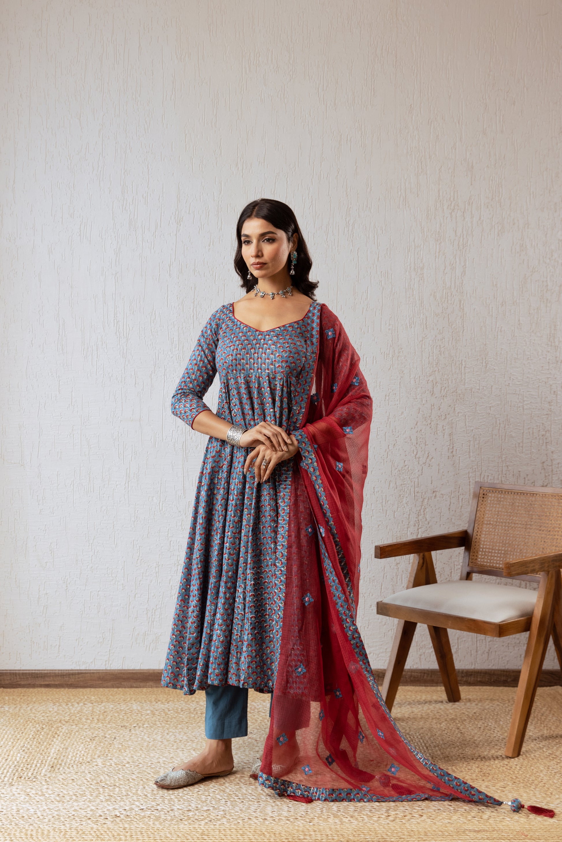 Celebrate the spirit of Deepavali with "Echoes of Block Print," our enchanting festive edit for 2024. This collection showcases exquisite Indian ethnic suits, each beautifully crafted with vibrant hand-block prints and intricate embroidery on shawl. Designed to embody the joy and brightness of the festival, these pieces are perfect for festive gatherings, family celebrations, and dazzling nights. Embrace the rich heritage and artistry of Indian textiles while shining with elegance and grace this Deepavali. Let the "Echoes of Block Print" illuminate your festive wardrobe!