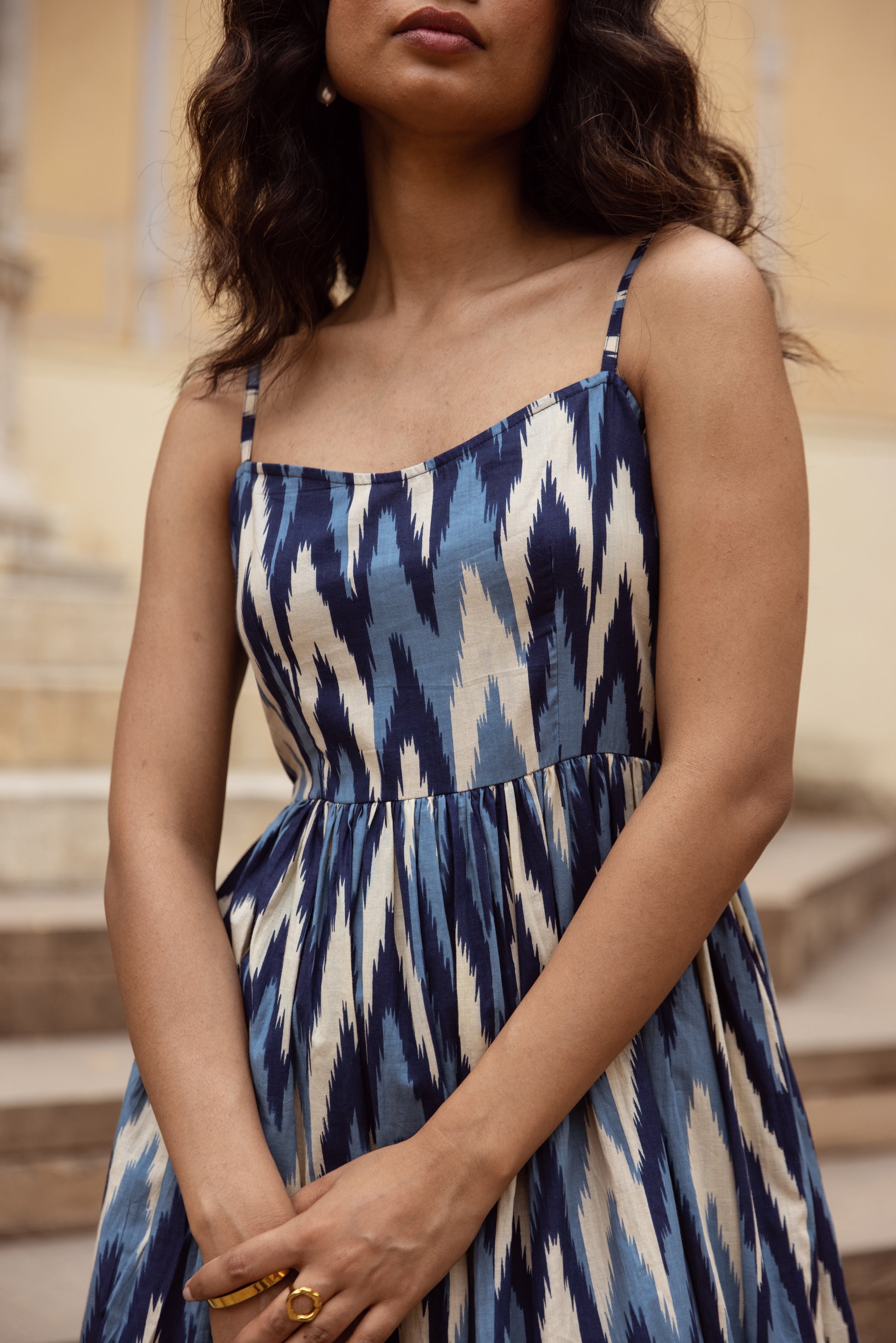 Say hello to your new favourite statement piece. The Jaipur Zig Dress features a striking ikat-inspired print in rich pink and ivory—bold, bright, and made to turn heads. Printed on soft, breathable cotton and cut in a flowy silhouette with a tiered hem, this dress is as comfortable as it is eye-catching.